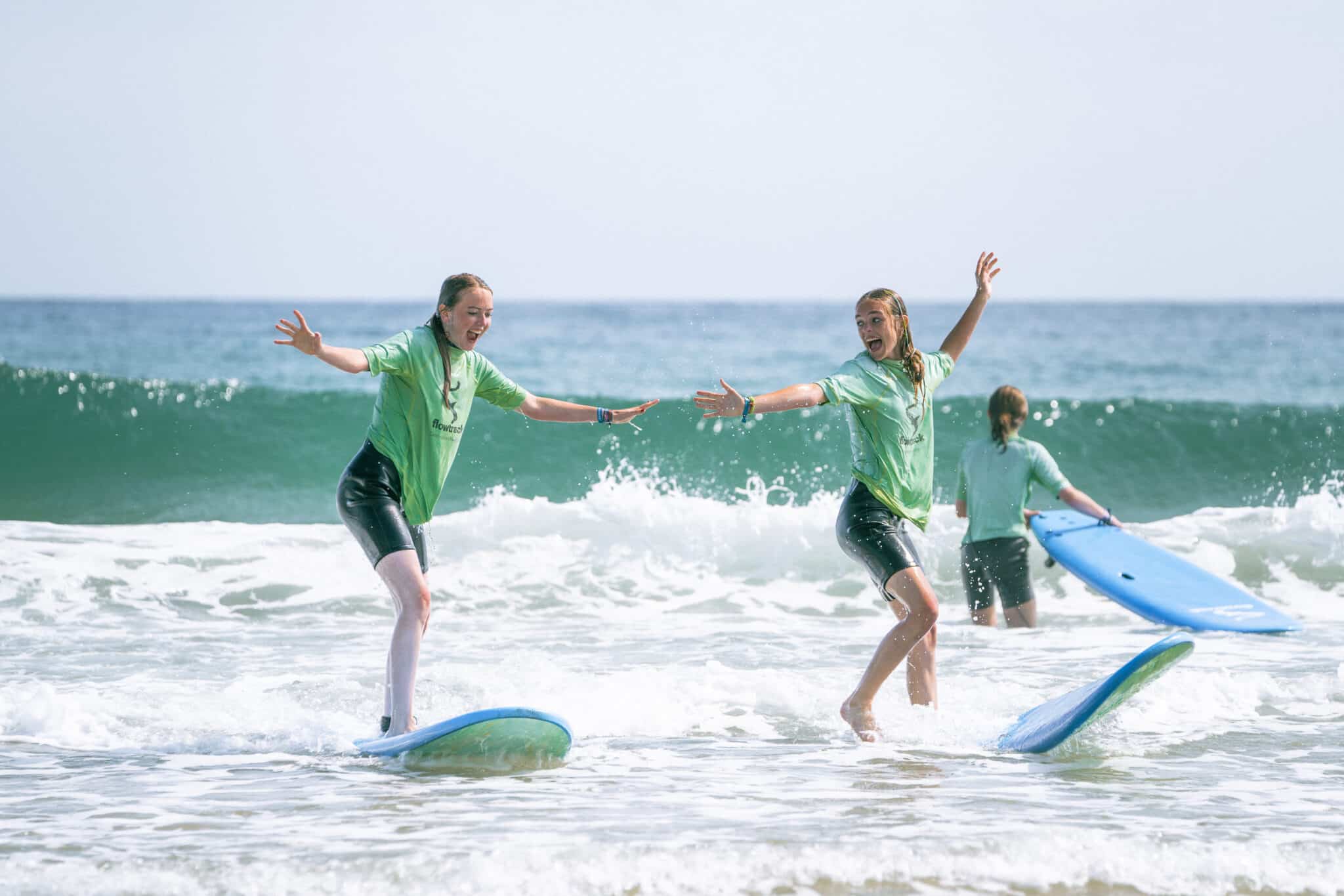 Al onze surflessen voor scholen gaan door op plaatsen die perfect zijn voor beginners. De golven komen rustig en regelmatig binnen en zijn ideaal als introductieles.