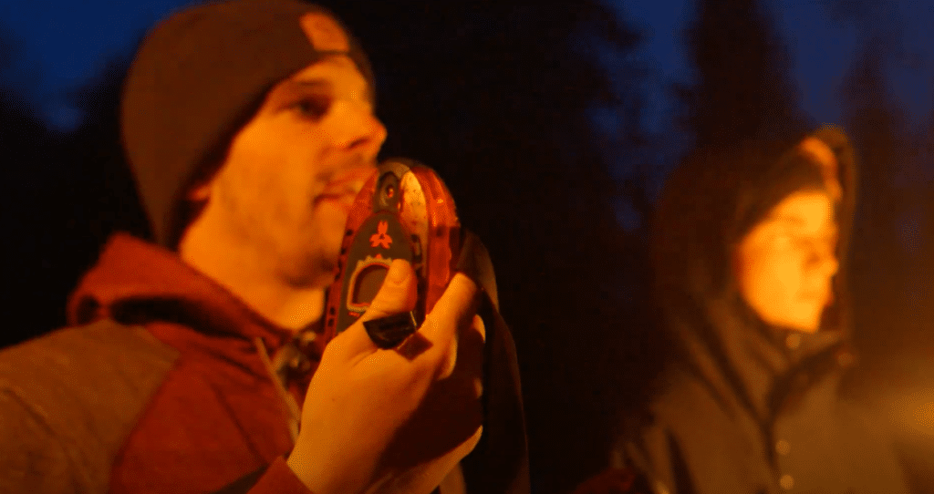 Hier ontmoet de spelvorm een belangrijk leermoment. Dit is een eerste kennismaking met Arva lawine beepers. De begeleiders leggen de leerlingen uit hoe het werkt en laten ze op een speelse manier kennis maken.