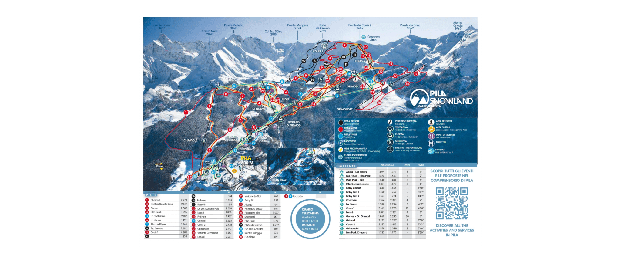 Pila Snowland is een sneeuwzeker skigebied in Valle d’Aosta, midden in het hart van de Italiaanse Alpen. Dankzij de directe gondelverbinding vanuit het dal sta je in een mum van tijd midden in het skigebied, met prachtige uitzichten op de omliggende Alpen, waaronder de Mont Blanc, de Matterhorn en de Monte Rosa.