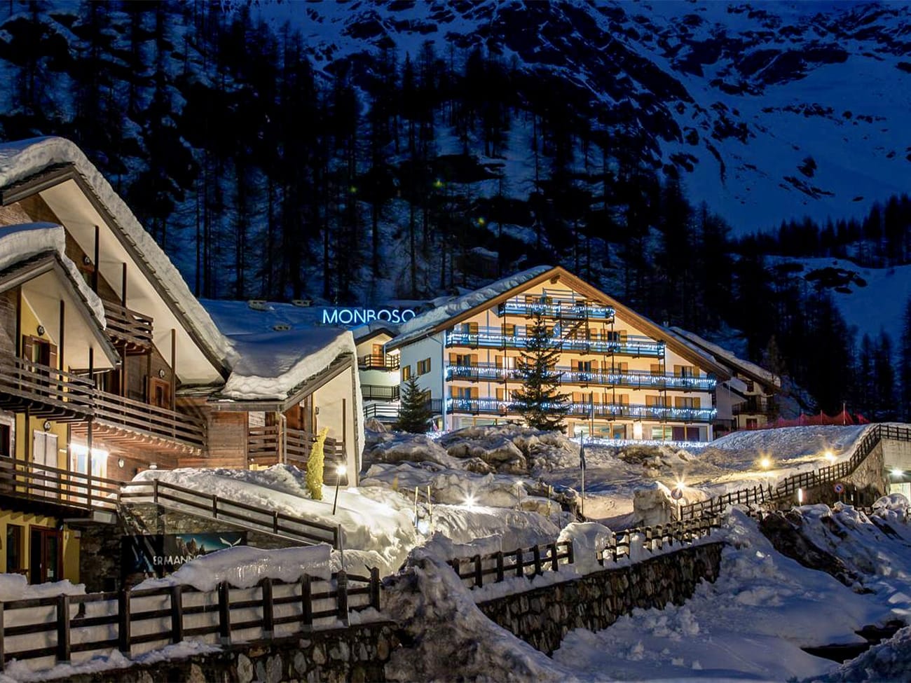 Hotel Monboso ligt aan de voet van de Monterosa in Staffal (1850m), het hoogst gelegen dorpje van deze vallei. Het hotel ligt op 200m van 2 liften die aansluiting geven op het skigebied Monterosa. Je kan met een gondel lift naar de kant van Alagna of met de grote gondel richting Champoluc. Vanaf deze kant van het skigebied kan je via de pistes tot aan het hotel terugskiën.De sneeuwgewenning en skilessen gaan door op wandelafstand van dit hotel. De kinderopvang gaat door in Hotel Chalet du Lys dat je voorbij wandelt op weg naar de piste.
