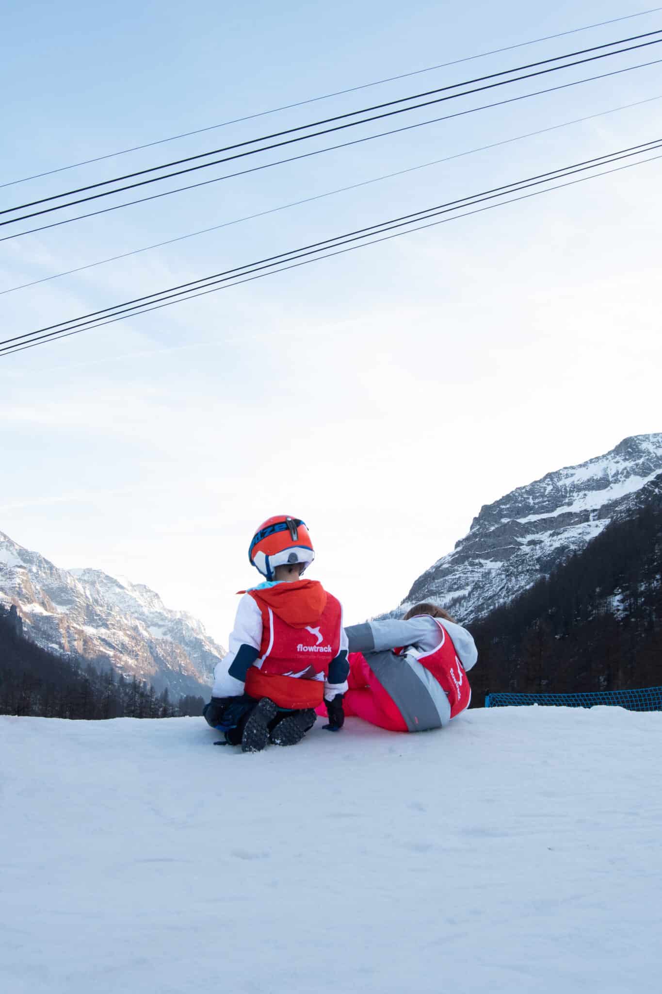 En ook na de laatste afdaling stopt het niet. Tijdens de kindvriendelijke après-ski trekken we eropuit met de Flowtrack crew. Sleeën, glijden met snowscoots, gek doen in de sneeuw: alles kan, zolang het maar fun is. Jij geniet van een drankje, zij van het avontuur. Iedereen happy.