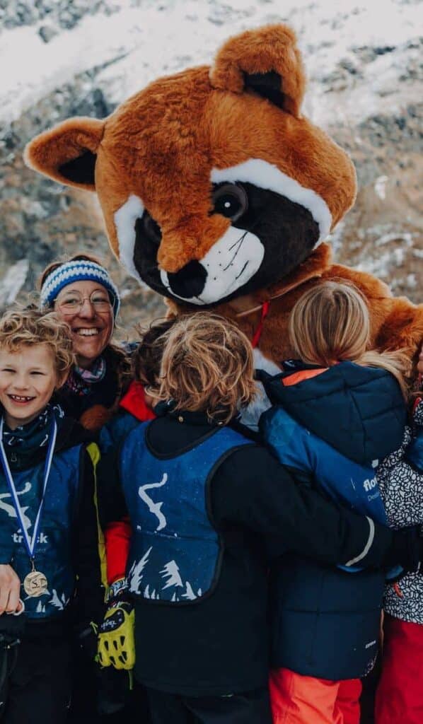 Verkleed in schattige dierenpakken, verwelkomen de Flowtrack mascottes jullie op de piste en zijn ze de sterren van onze animatie.