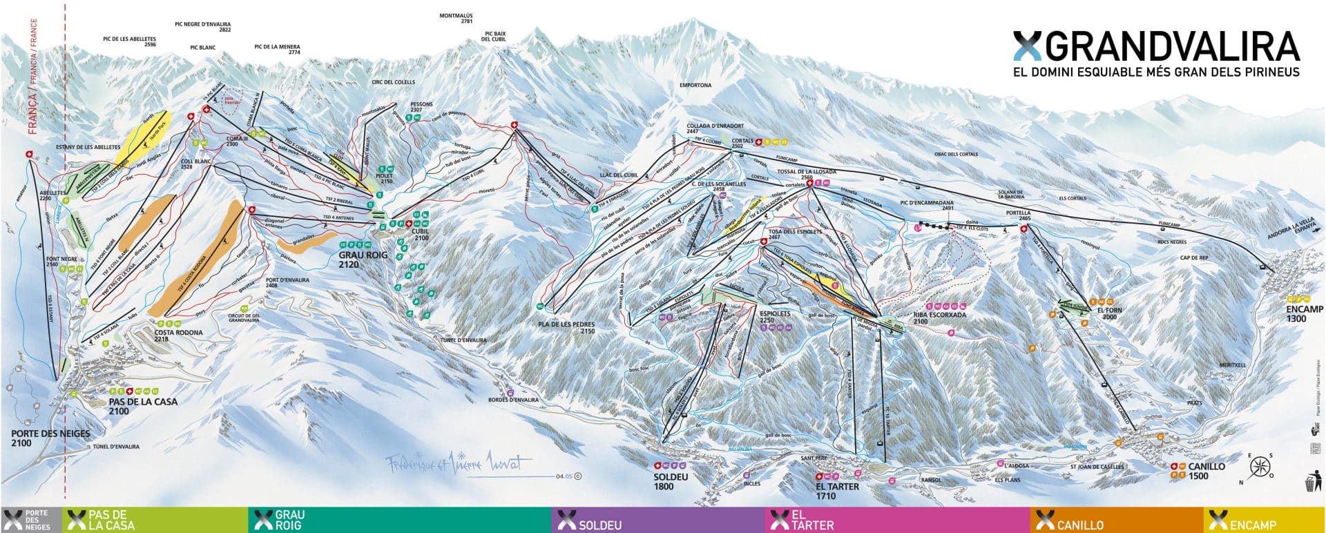 Grandvalira in Andorra is het grootste skigebied in de Pyreneeën. Met 210 kilometer aan pistes verdeeld over vier dalen vormt dit gebied een ideale combinatie voor alle soorten wintersporters. Uitdagende routes voor gevorderden of brede blauwe pistes voor beginners. Iedereen kan hier terecht. Drie funparks met halfpipes, kickers en funboxes bieden adrenalinejunkies de mogelijkheid om hun freestyle-trucs te oefenen. En wat dacht je van 300 zonnige dagen per jaar? En sneeuw? Check! Dankzij de hoog gelegen pistes heb je hier gegarandeerd sneeuwpret!