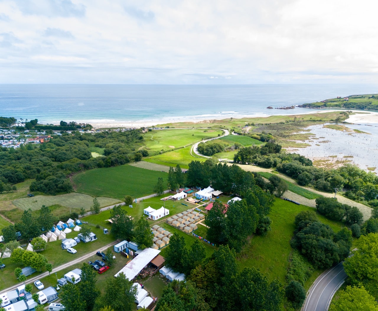 Het kamp is gelegen tussen 2 baaien: Oyambre en Gerra. De combinatie van het heuvelachtige en groene landschap met de Atlantische oceaan zorgt voor een unieke omgeving om te (leren) surfen.
