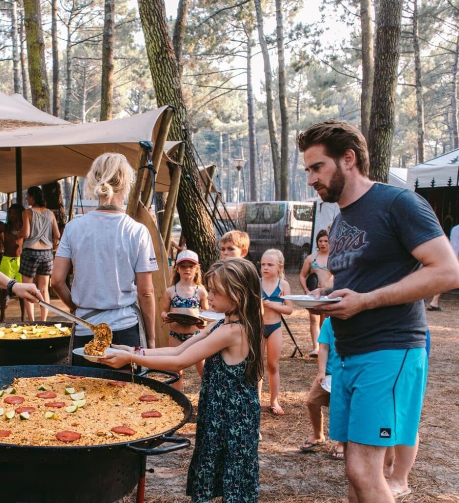 Bij Flowtrack Family Surf Biscarrosse krijg je een mooie ‘glamping’ formule aangeboden, zodat je zorgeloos kan genieten terwijl alles voor je geregeld wordt. Onze koks bereiden heerlijke maaltijden, de kinderopvang zorgt voor optimaal entertainment voor de kinderen en jij kiest zelf hoeveel luxe je wenst in je verblijf. Van budgetvriendelijke kampeerder tot Deluxe tent voor de comfortzoekers, iedereen vindt wel een passend plekje in de Family Village. Perfect voor gezinnen die niet langer een klassieke all-in formule wensen maar op zoek zijn naar een avontuurlijke vakantie waar je als gezin samen het surfen ontdekt.